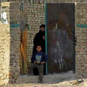 An Iraqi woman and her son watch as U.S. soldiers in Al Sadr City